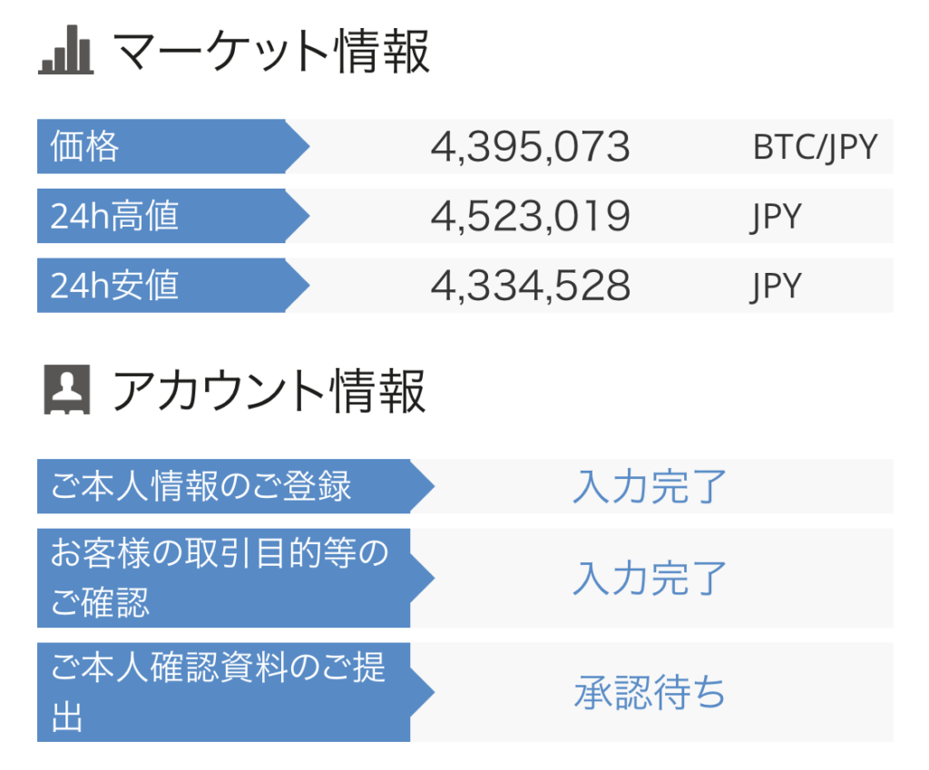 bitFlyerのユーザーページにログインしていると思いますが、画面下の方に登録状況が出ますので確認してみましょう。