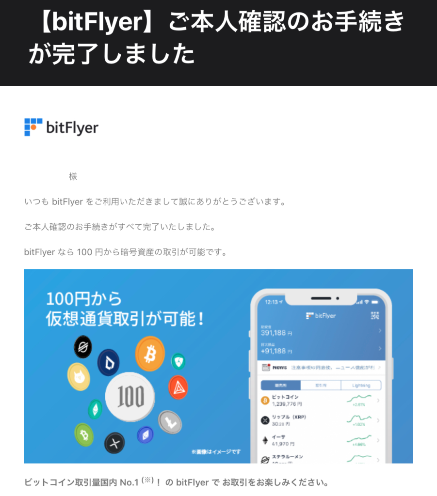 無事本人確認書類の承認が降りるとメールが届きます。