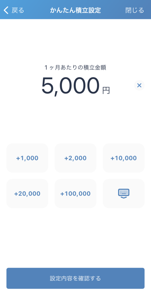 - 最後に1ヶ月あたりの積立金額を設定します。