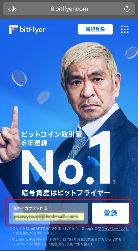 - bitFlyerの公式HPから登録する。