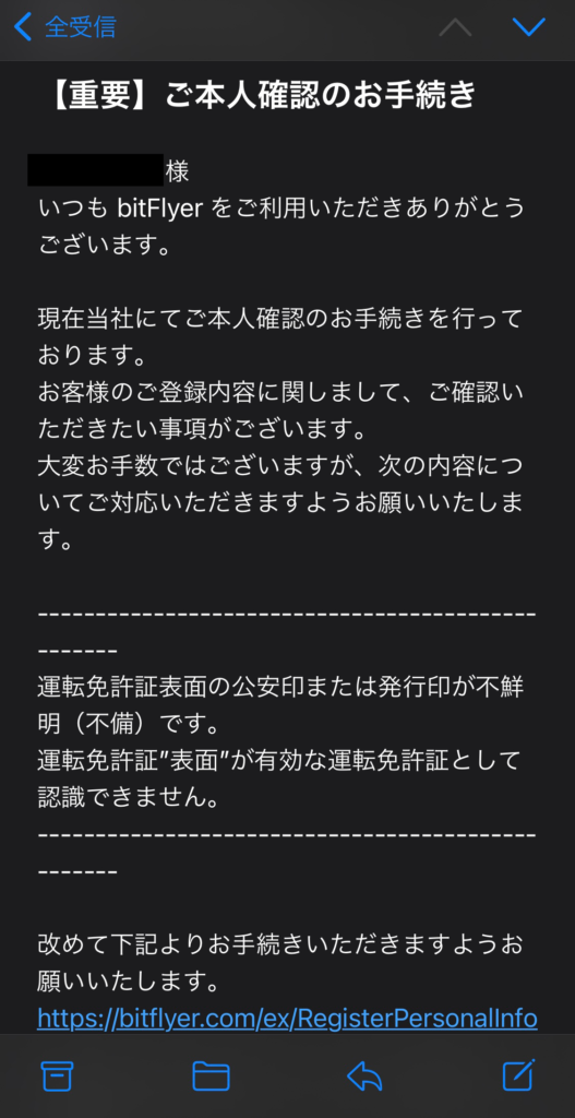 私もメールで後から免許証がうまく認識出来ないとメールが届きました。