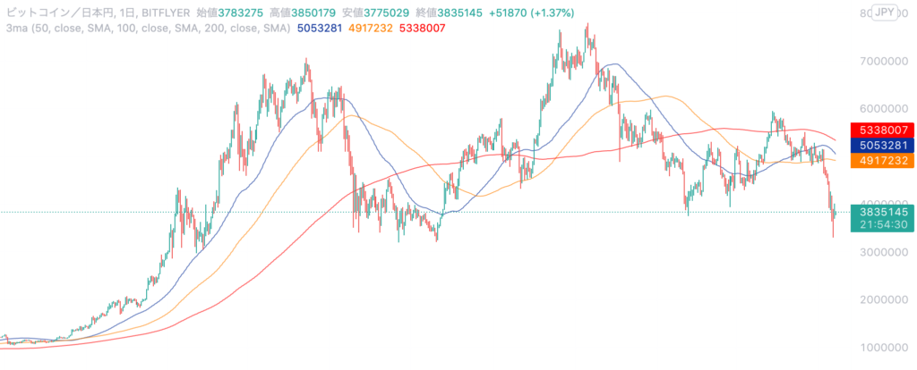 直近では米国金利の上昇と量的引き締め、またウクライナ紛争の長引いていることによって相場は暴落しています。